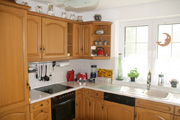 - Küche mit Herd, Backofen, großem Kühl- und Gefrierschrank,